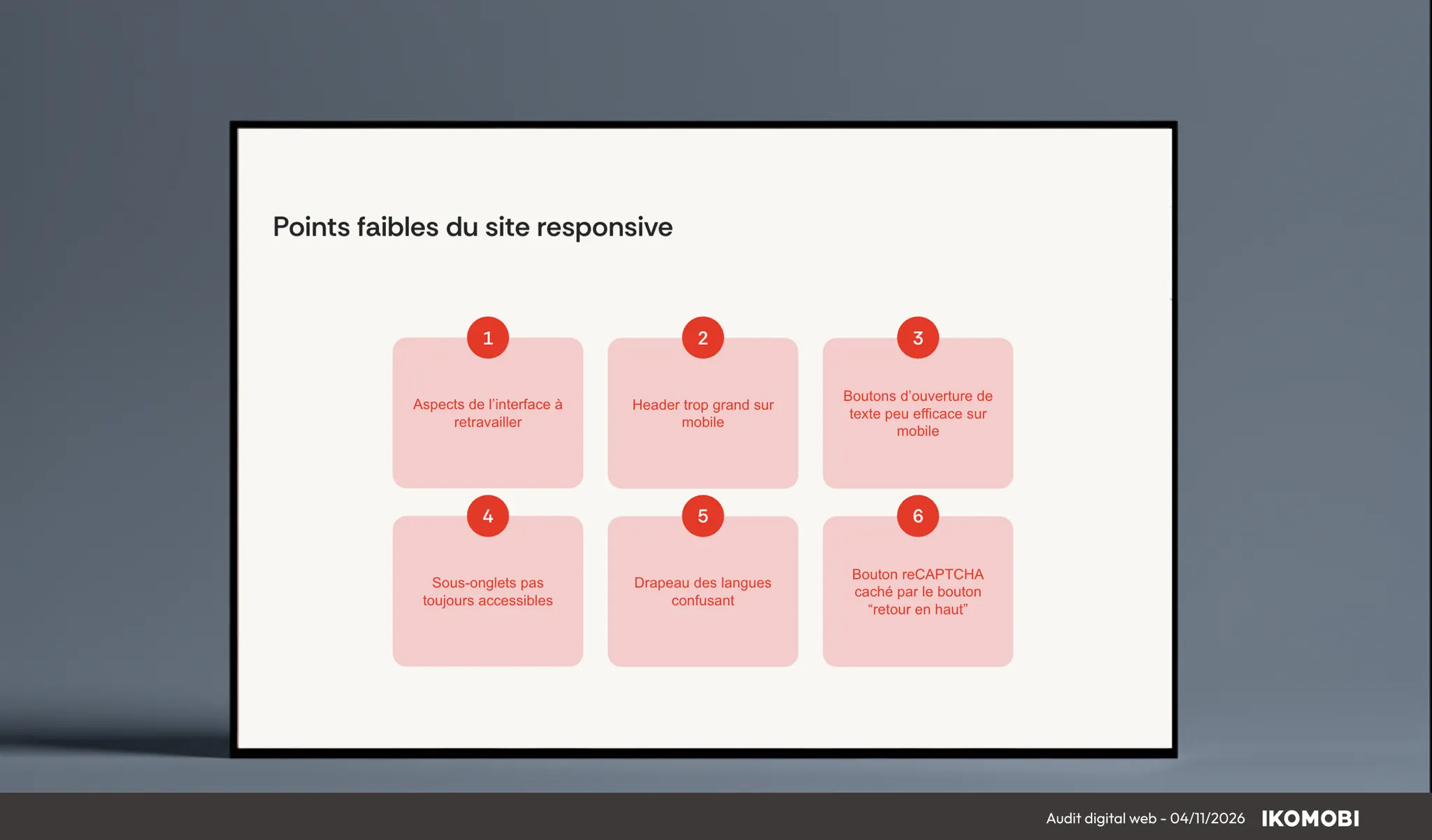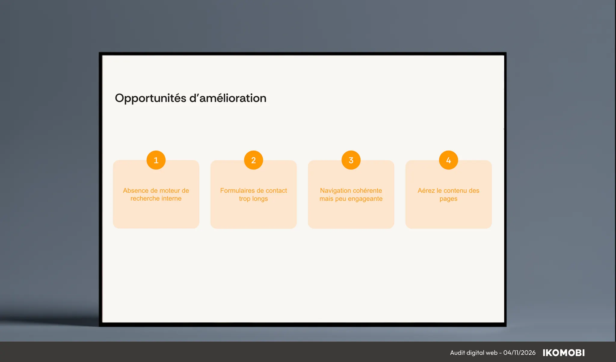 Réalisé par nos experts en stratégie digitale et UX, cet accompagnement donne à vos équipes les clés pour augmenter la visibilité, le trafic qualifié, améliorer la conversion et renforcer la rentabilité. Les données recueillies permettent de dresser un diagnostic clair et complet, avec le plan d’action associé.