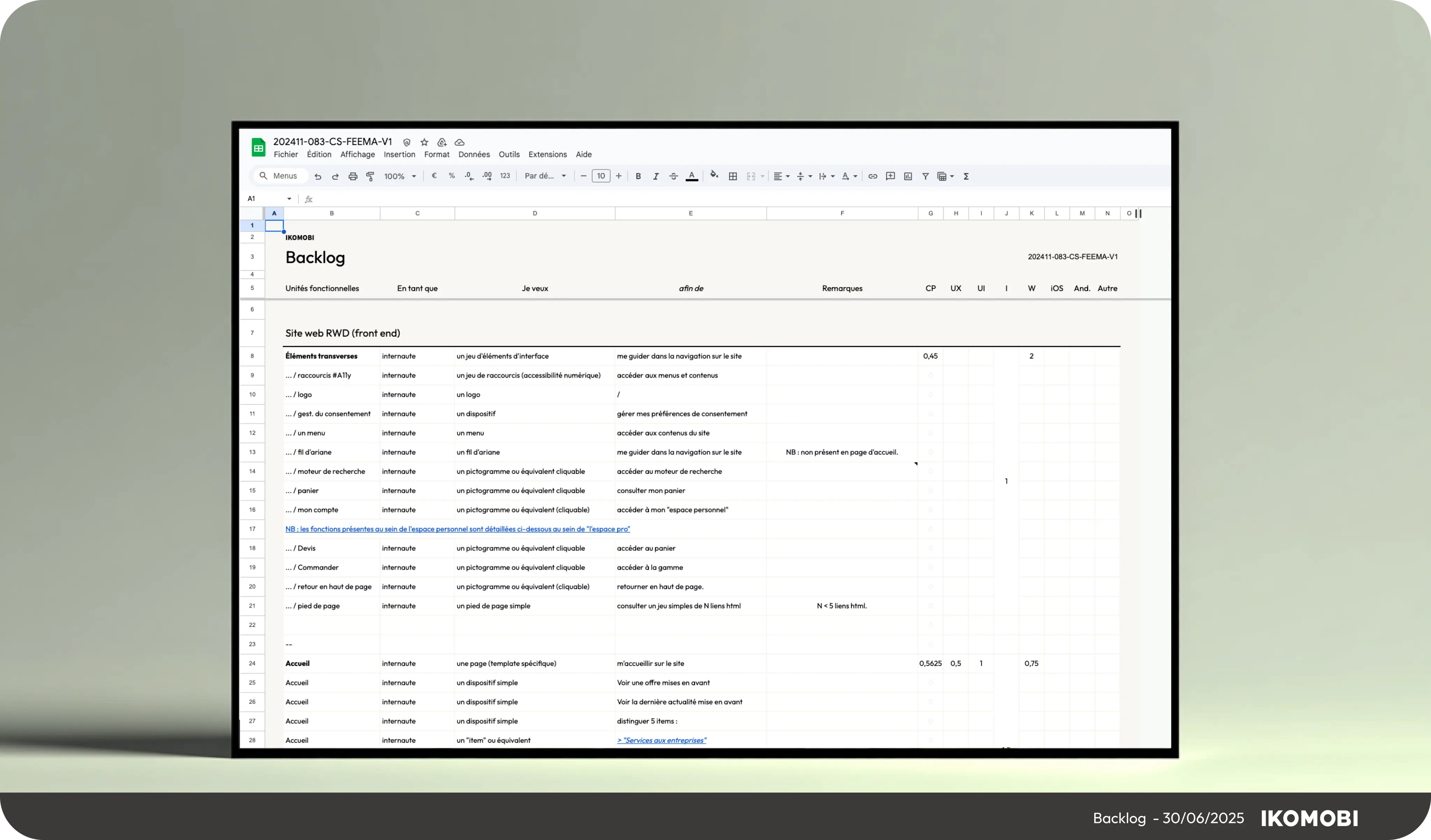 Dans un projet de conception, le backlog est un support qui organise les fonctionnalités voire les améliorations nécessaires en les classants en epics, user stories, et tâches.