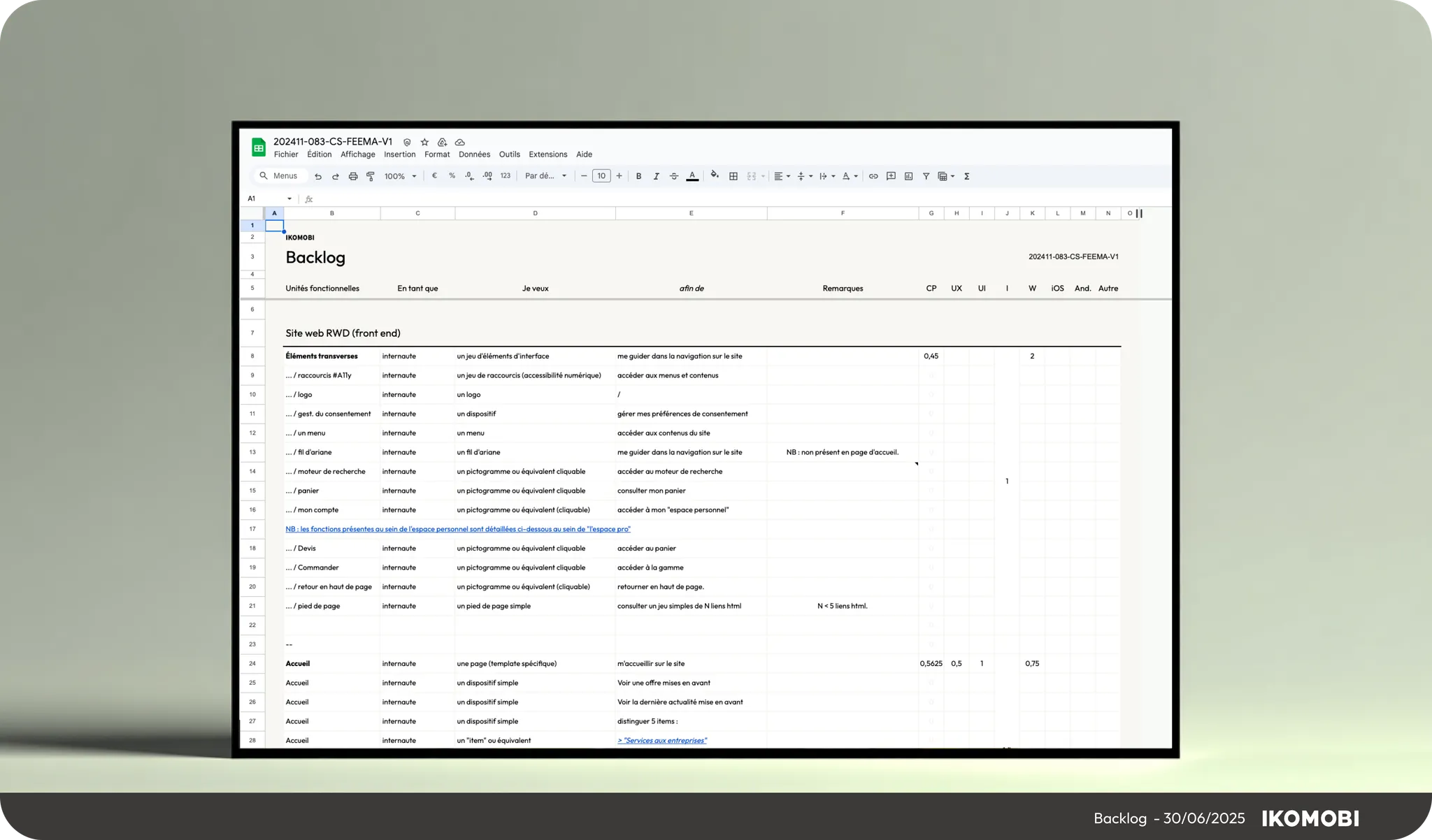 Rédaction du backlog complet (epics, user stories, tâches) et évaluation budgétaire.