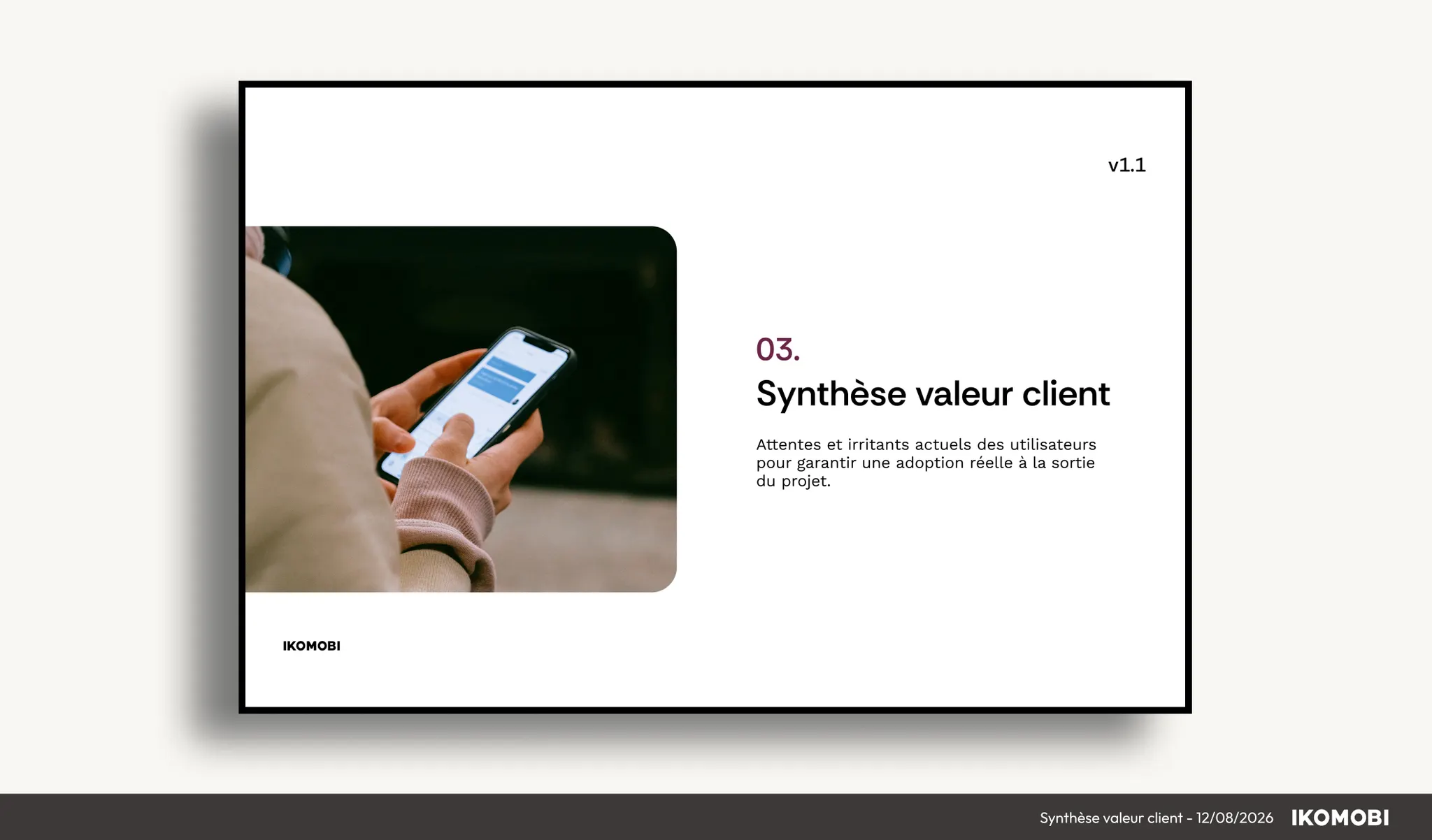 Ce livrable identifie les irritants actuels et les attentes que seule une application mobile peut résoudre, pour garantir une adoption réelle à la sortie du projet.