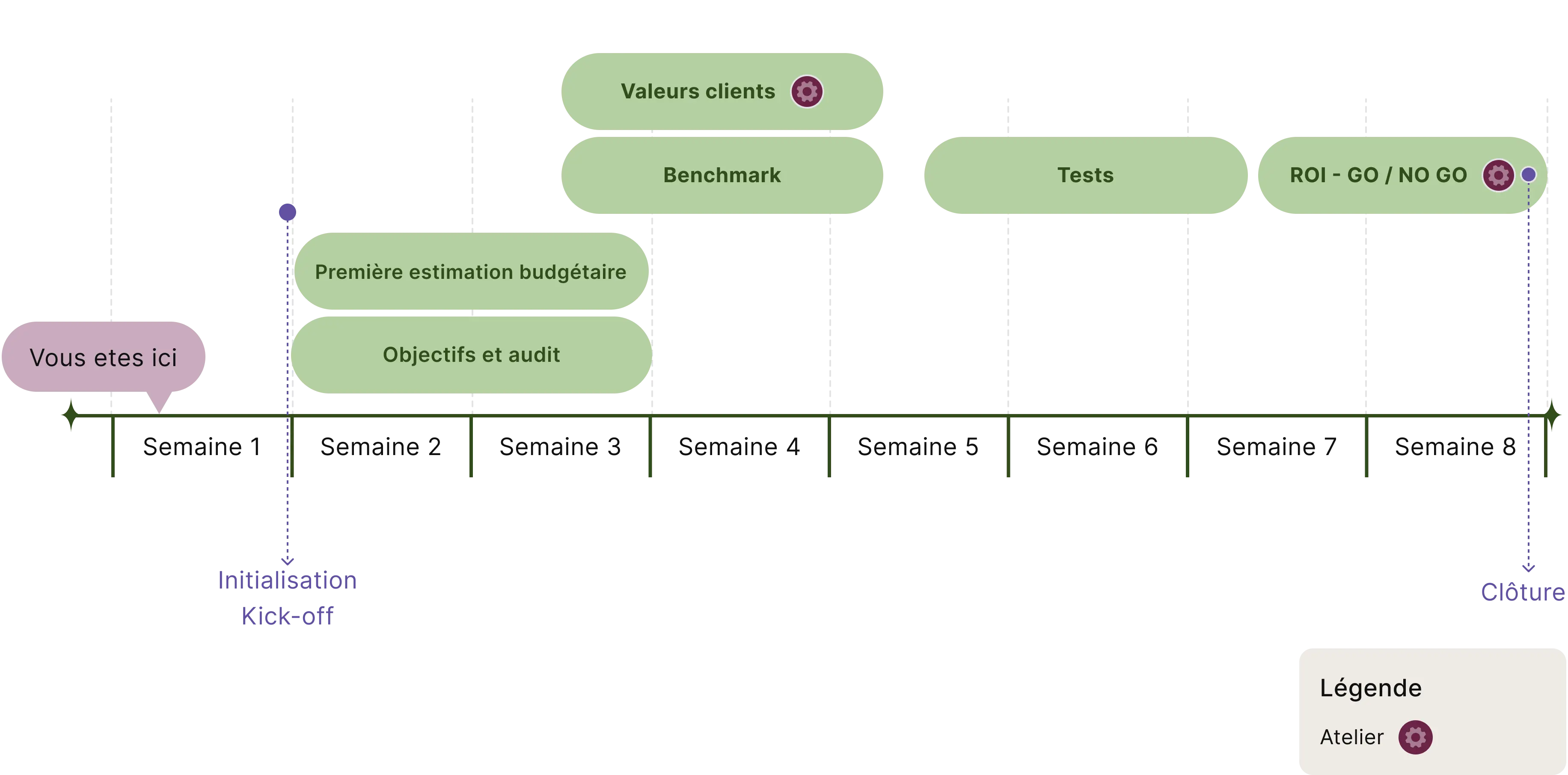 Analyse du backlog, arbitrage des fonctionnalités, estimation du budget MVP et simulation du ROI pour éclairer la décision finale.